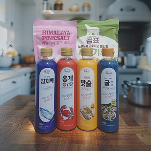 ±¸¼º ºÎħ°¡·ç1p(500g), È÷¸»¶ó¾ßÇÎÅ©¼ÖÆ®1p(400g), ±¼¼Ò½º1p(500ml), È«°Ô°£Àå1p(500ml), ¸À¼ú1p(500ml), ÂüÄ¡¾×1p(500ml) Á¦Ç°±Ô°Ý 27.5*5.5*22.5CM